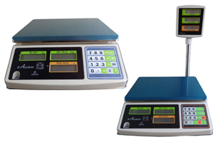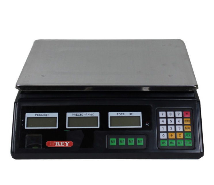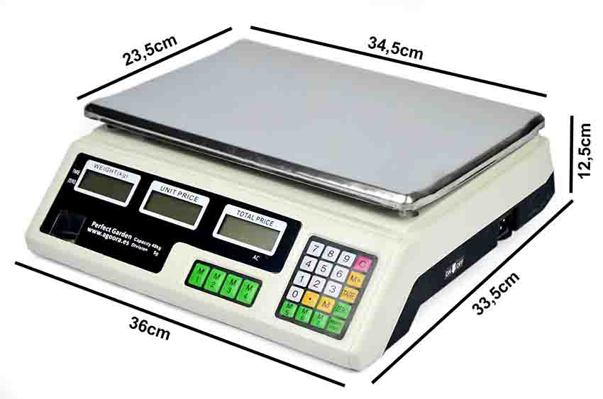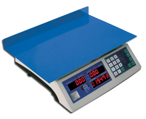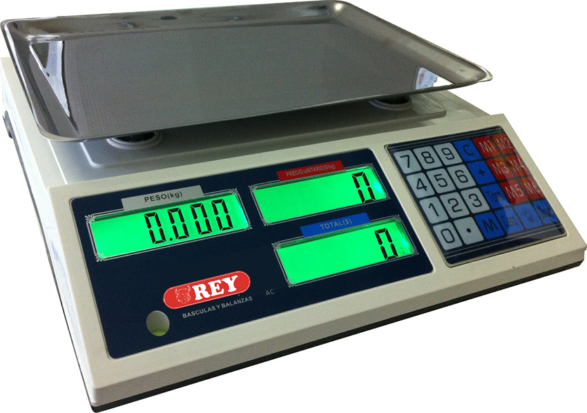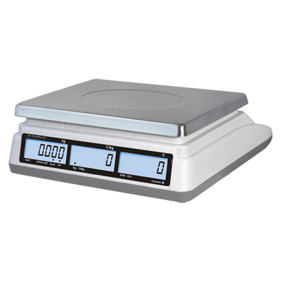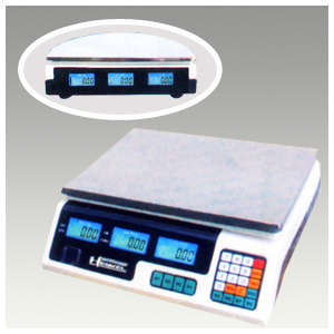 Balanza de mesa de tres pantallas. Peso, precio unitario y precio total, abarcan casi todas las actividades de empresas. Están fabricadas para trabajar cómodamente sobre una mesa horizontal y sus usos son muy diversos; industrial, panificadoras, cocinas, hostelería, envasados, etc. Algunas disponen de funciones como cuentapiezas, función de límites para el envasado, protecciones contra el polvo, humedad y sobregolpe. |